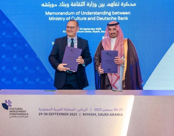 أعلنت وزارة الثقافة توقيع مذكرة تفاهم مع دويتشه بنك، بهدف تعزيز التبادل الثقافي وتنمية المواهب الإبداعية والفنية، وذلك على هامش مؤتمر الاستثمار الثقافي المقام في مركز الملك فهد الثقافي بالرياض.