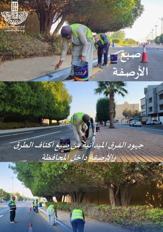 بلدية الخفجي تُحسّن المشهد الحضري من خلال دهان البردورات