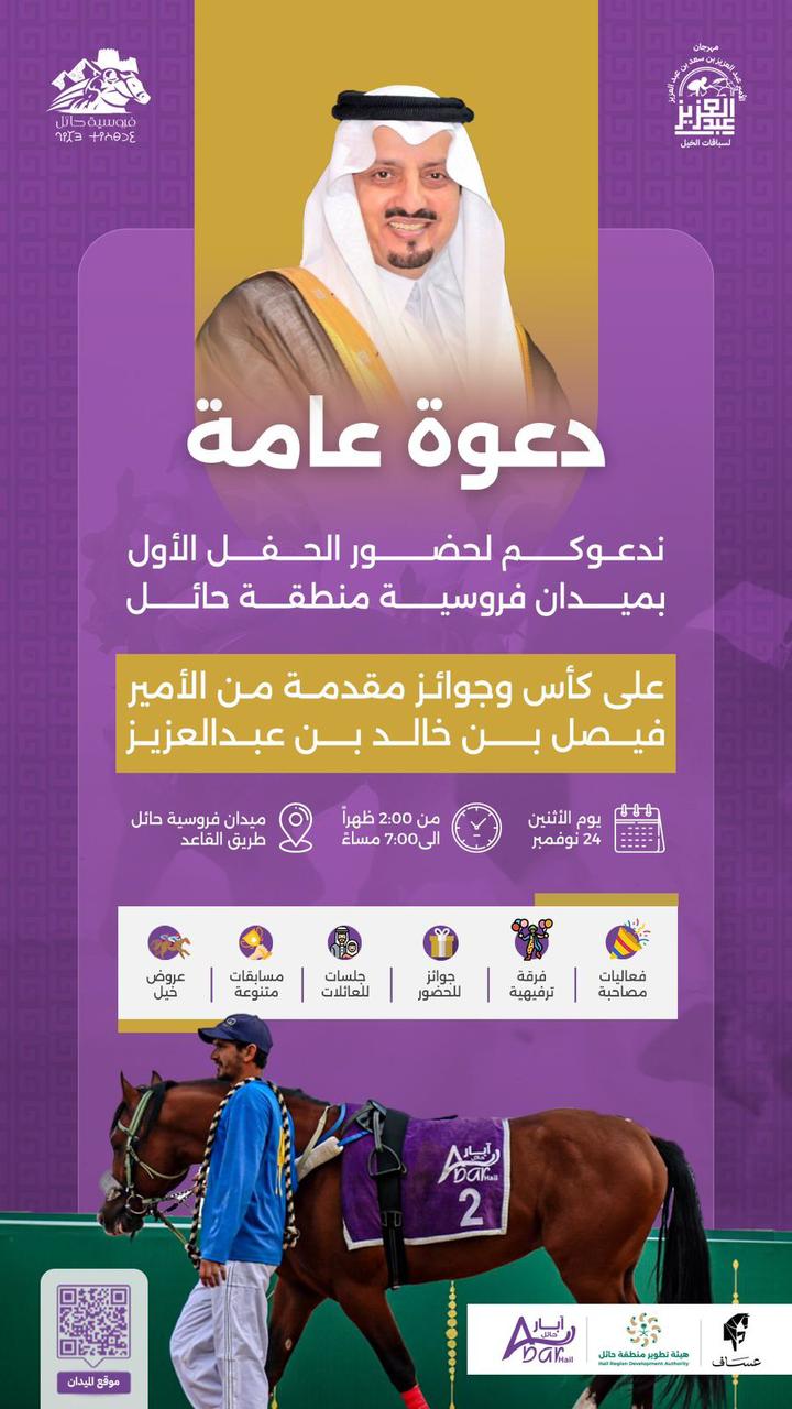 انطلاق مهرجان الأمير عبدالعزيز بن سعد لسباقات الخيل غدًا في حائل