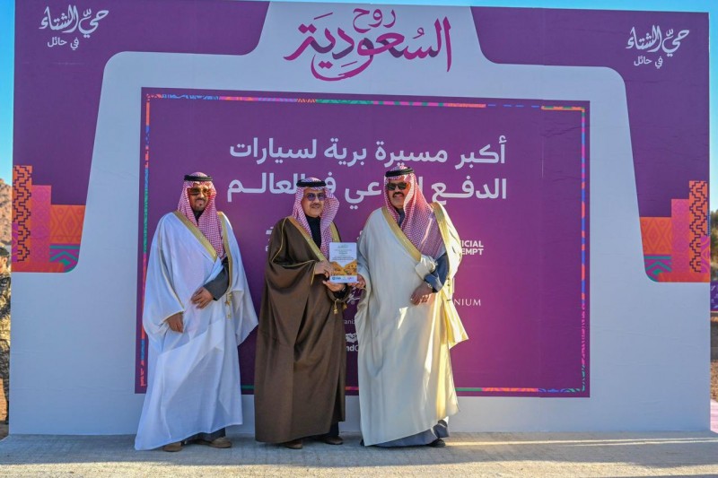 وجاءت هذه المسيرة التاريخية بتنظيم مشترك من عدد من الجهات، وبرعاية واحتضان بيت الثقافة، وبدعم من 14 جهة حكومية، من بينها إمارة منطقة حائل، حيث شهدت مشاركة (501) مركبة دفع رباعي، في إنجاز عالمي يعكس القدرات التنظيمية والتكامل المؤسسي الذي تشهده المنطقة.