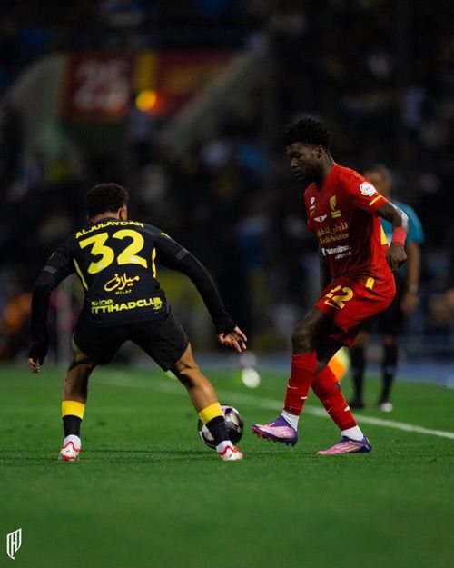 ورغم البداية الأفضل للاتحاد الذي دخل اللقاء بضغط هجومي واضح وكاد أن يفتتح التسجيل مبكرًا عبر حسام عوار بتسديدة مرت فوق العارضة، ثم رأسية خطيرة ارتطمت بالقائم قبل أن يسيطر عليها الحارس كوين كاستيلس، إلا أن الفريق الأصفر لم يستثمر تلك الفرص، ليحصل لاحقًا على ركلة جزاء ترجمها الفرنسي كريم بنزيما إلى هدف التقدم في الدقيقة التاسعة والعشرين.