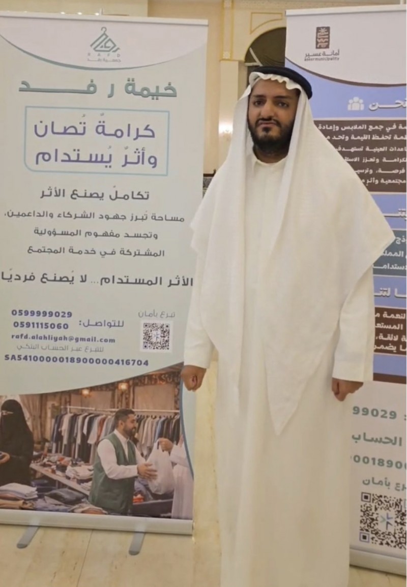 وتمثّل الخيمة نموذجًا متكاملًا للعمل المجتمعي المنظم، بدعم من أمانة منطقة عسير، وتنظيم جمعية رفد، في شراكة تعزز التكامل بين الجهات الحكومية والقطاع غير الربحي لخدمة المستفيدين وفق أعلى معايير الجودة.