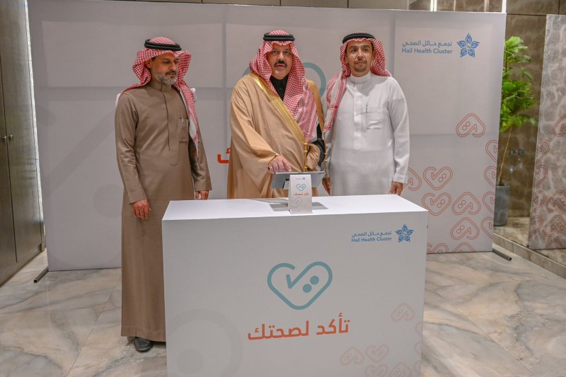 أطلق صاحب السمو الملكي الأمير عبدالعزيز بن سعد بن عبدالعزيز أمير منطقة حائل اليوم، حملة تأكّد لصحتك التي ينظمها تجمّع حائل الصحي بالتزامن مع شهر رمضان المبارك، بحضور الرئيس التنفيذي للتجمّع المهندس حاتم الرشدان، ومدير عام فرع وزارة الصحة بالمنطقة سلطان المسيعيد. واستمع سموه إلى شرح عن أهداف الحملة الرامية لرفع الوعي بأهمية الكشف المبكر عن الأمراض المزمنة عبر إجراء 10 فحوصات أساسية في مراكز الرعاية الأولية، تشمل مؤشرات السكر والدهون والضغط والنبض، لضمان صيام آمن وتحسين جودة حياة المجتمع.