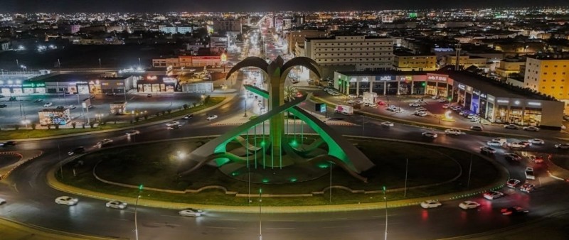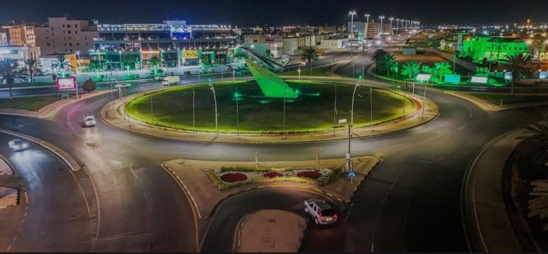 احتفاءً بيوم العلم أمانة تبوك تزين الشوارع والميادين باللون الأخضر