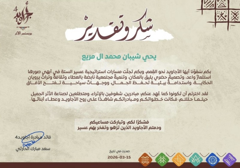 أجاويد 4 تكرّم يحيى شيبان تقديرًا لجهوده في خدمة مجتمع عسير