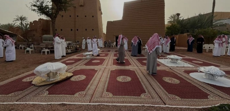 شهدت شوارع الأحياء والساحات القريبة من المساجد تجمعات للأهالي بعد أداء صلاة العيد، حيث تبادل المواطنون والمقيمون التهاني وسط أجواء المحبة والتآخي، وقدمت خلالها القهوة السعودية والشاي والتمر ومختلف أنواع الحلويات المعدة لهذه المناسبة.