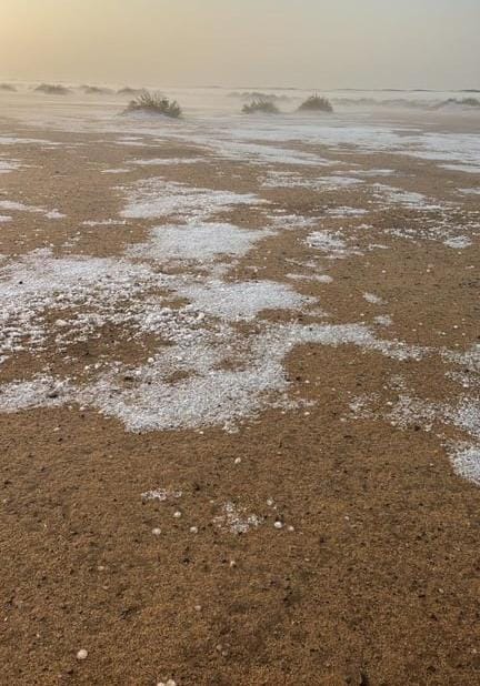 وجاءت الحالة الجوية نتيجة قوة السحب الرعدية التي أثّرت على الموقع، حيث تساقطت حبات البَرَد بكثافة وبأحجام كبيرة، ترافق معها تدفّق واضح للسيول في الأودية المجاورة، مما عكس شدة الحالة المناخية التي شهدتها المنطقة.