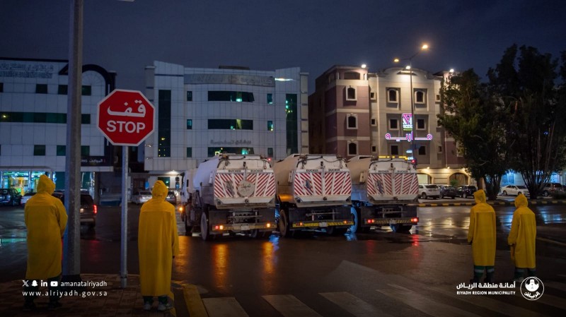 تواصل فرق أمانة منطقة الرياض أعمالها الميدانية للتعامل مع الحالة المطرية التي تشهدها العاصمة لضمان سرعة الاستجابة للحالات الطارئة.
