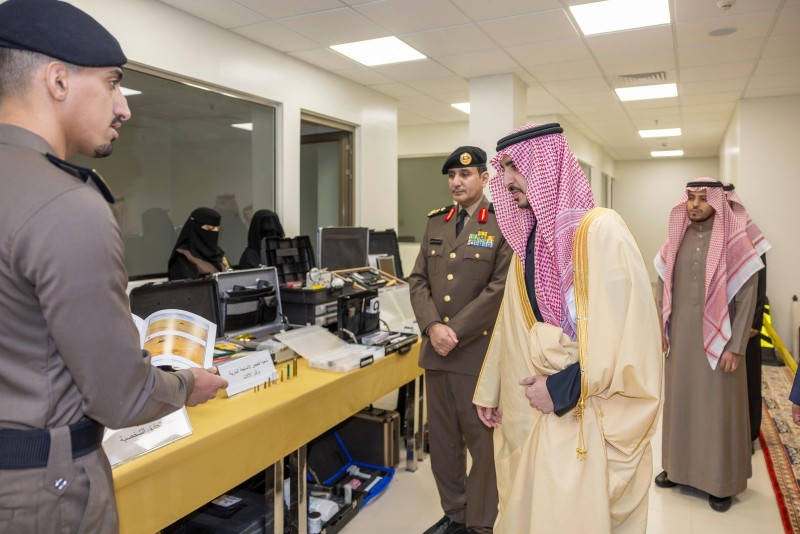 واستمع سمو أمير المنطقة إلى شرحٍ مفصل عن الإمكانات التقنية وآليات العمل ودورها في دعم أعمال الفحص والتحليل الجنائي بدقة عالية، مما يسهم في سرعة إنجاز القضايا وتحقيق العدالة.