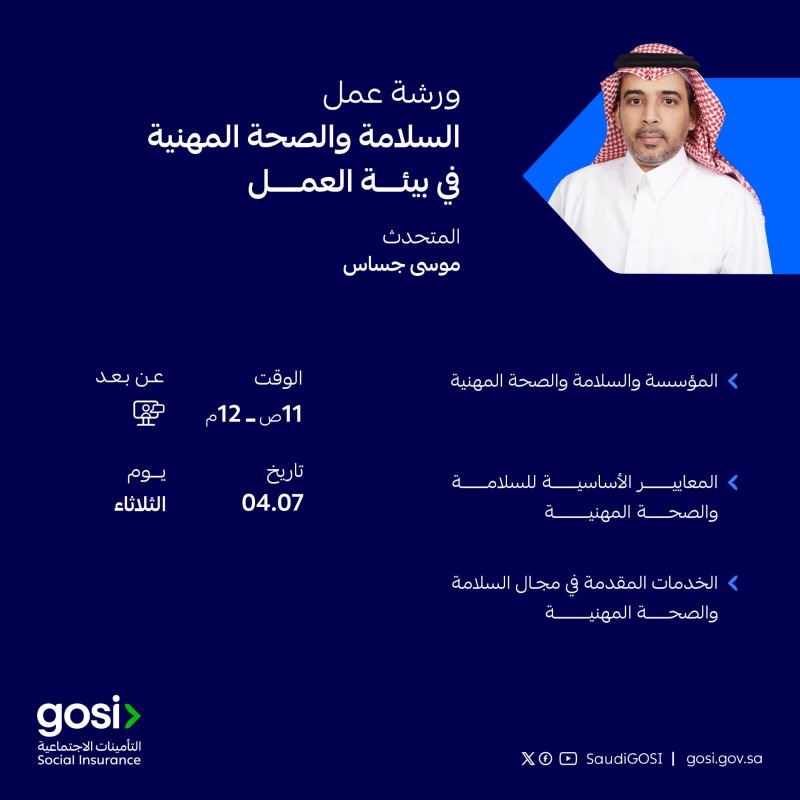 دعت المؤسسة العامة للتأمينات الاجتماعية إلى حضور ورش عمل تُعقد افتراضيًا يومي 7 و9 أبريل، ضمن جهودها لتعزيز التوعية بالخدمات المقدمة للمستفيدين.