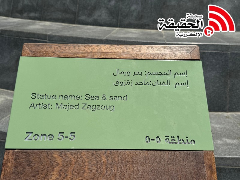 ويحمل المجسم اسم «Sea & Sand»، ويقع ضمن المنطقة (5-5)، حيث يعتمد في تصميمه على تكوينات هندسية متدرجة باللون الأزرق، تتصاعد نحو الأعلى بشكل متناغم، في محاكاة بصرية لحركة الأمواج وتدرجات البحر، في مقابل حضور اللون الرمادي في القاعدة، الذي يرمز إلى ثبات الأرض والرمال.